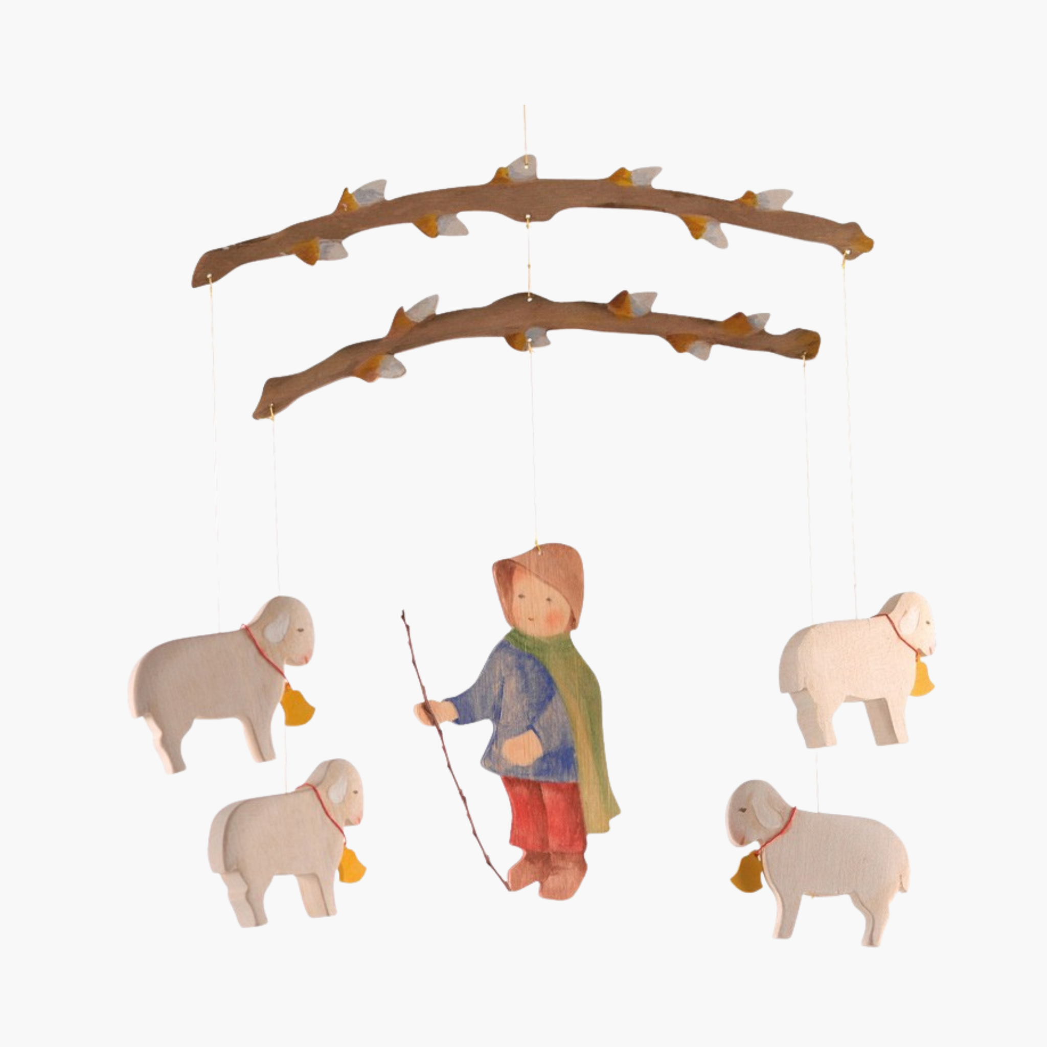 As a playful eye-catcher in the nursery, our beautifully and artistically designed mobiles invite dreams and relaxation. Baby and child mobile "Shepherd II" by Ostheimer.