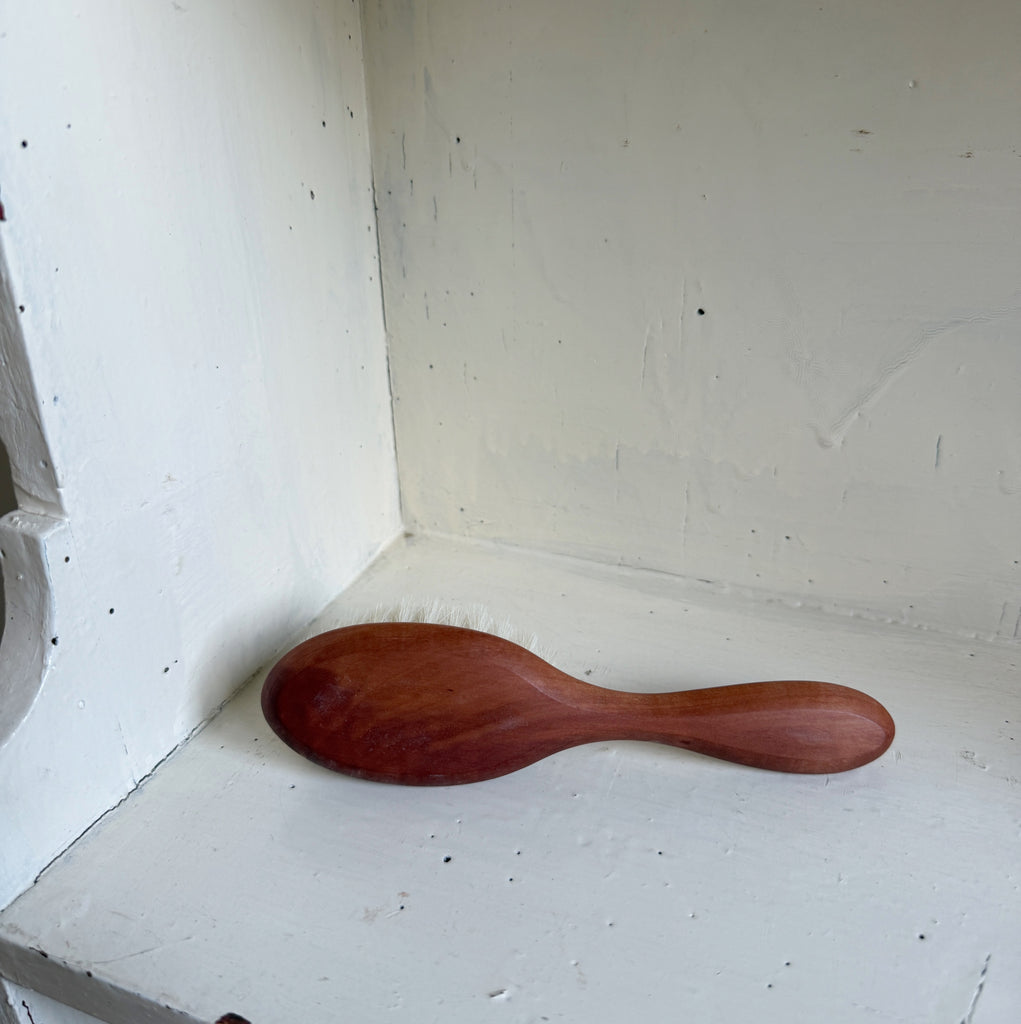 The perfect "cuddly brush" for babies up to 1 year. Beautifully made of oiled pearwood and goat hair.