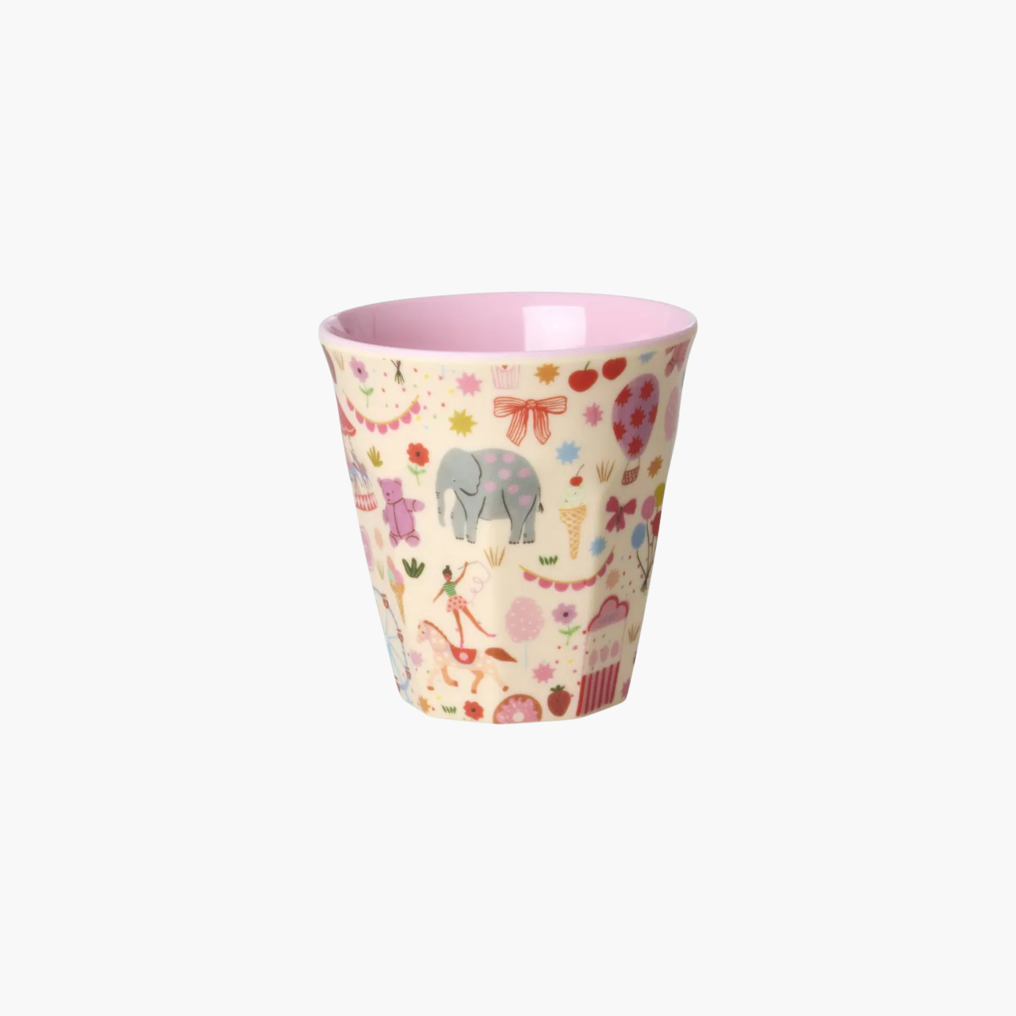 Rice Melamine Kids Cup with Pink Fun Fair Print Small