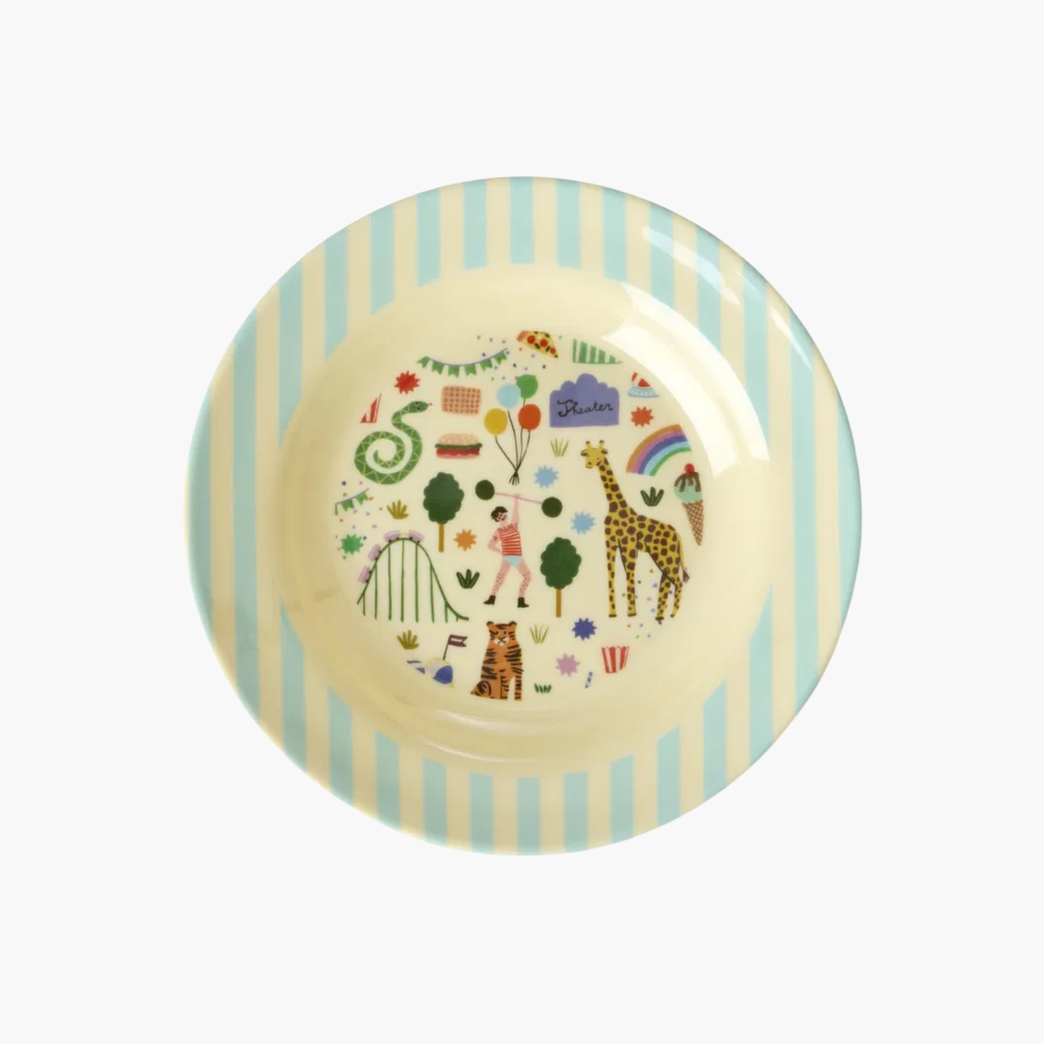 Rice Melamine Kids Bowl with Mint Fun Fair Print