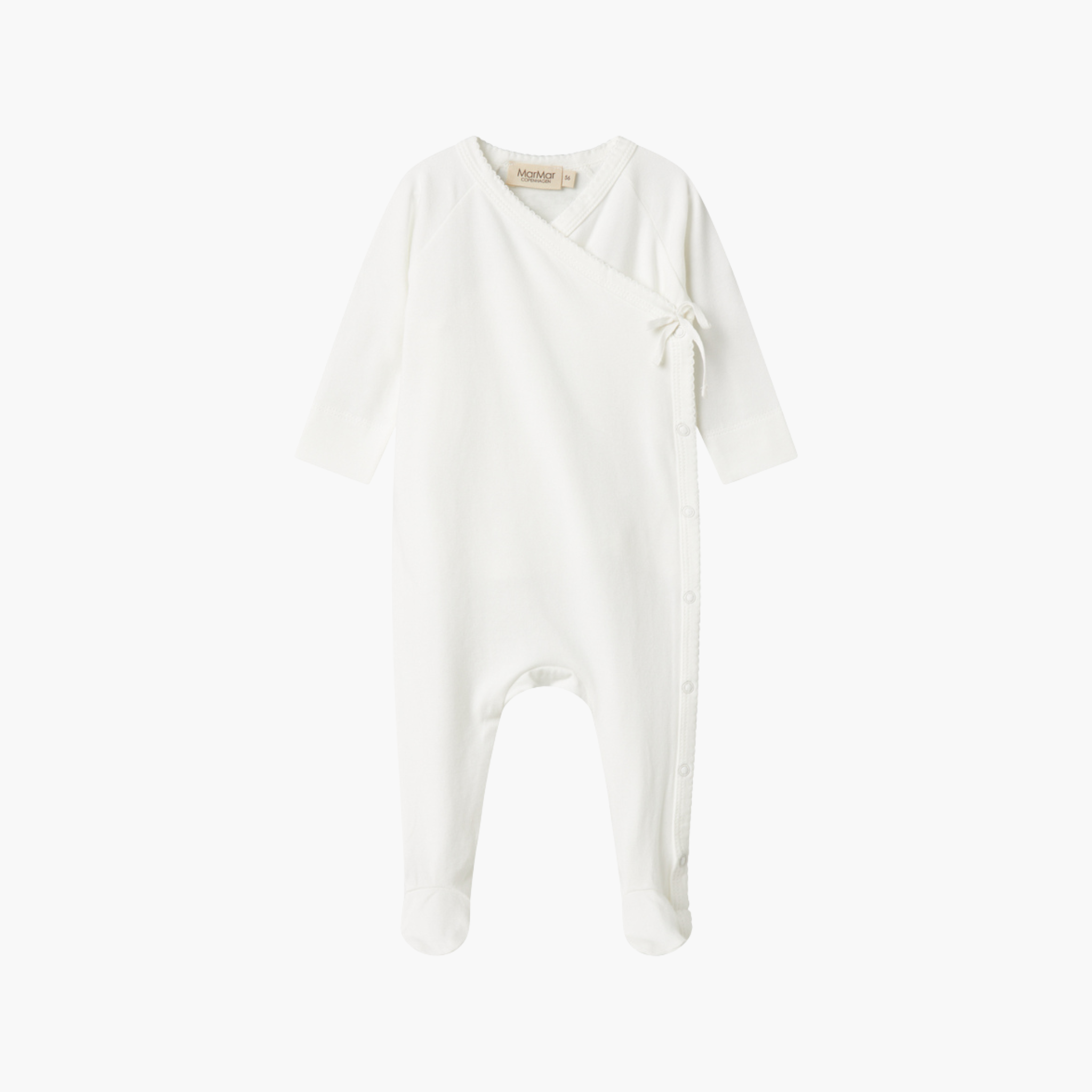 Marmar Copenhagen wrap front romper in a soft cotton blend with a side tie detail and snap button fastening.